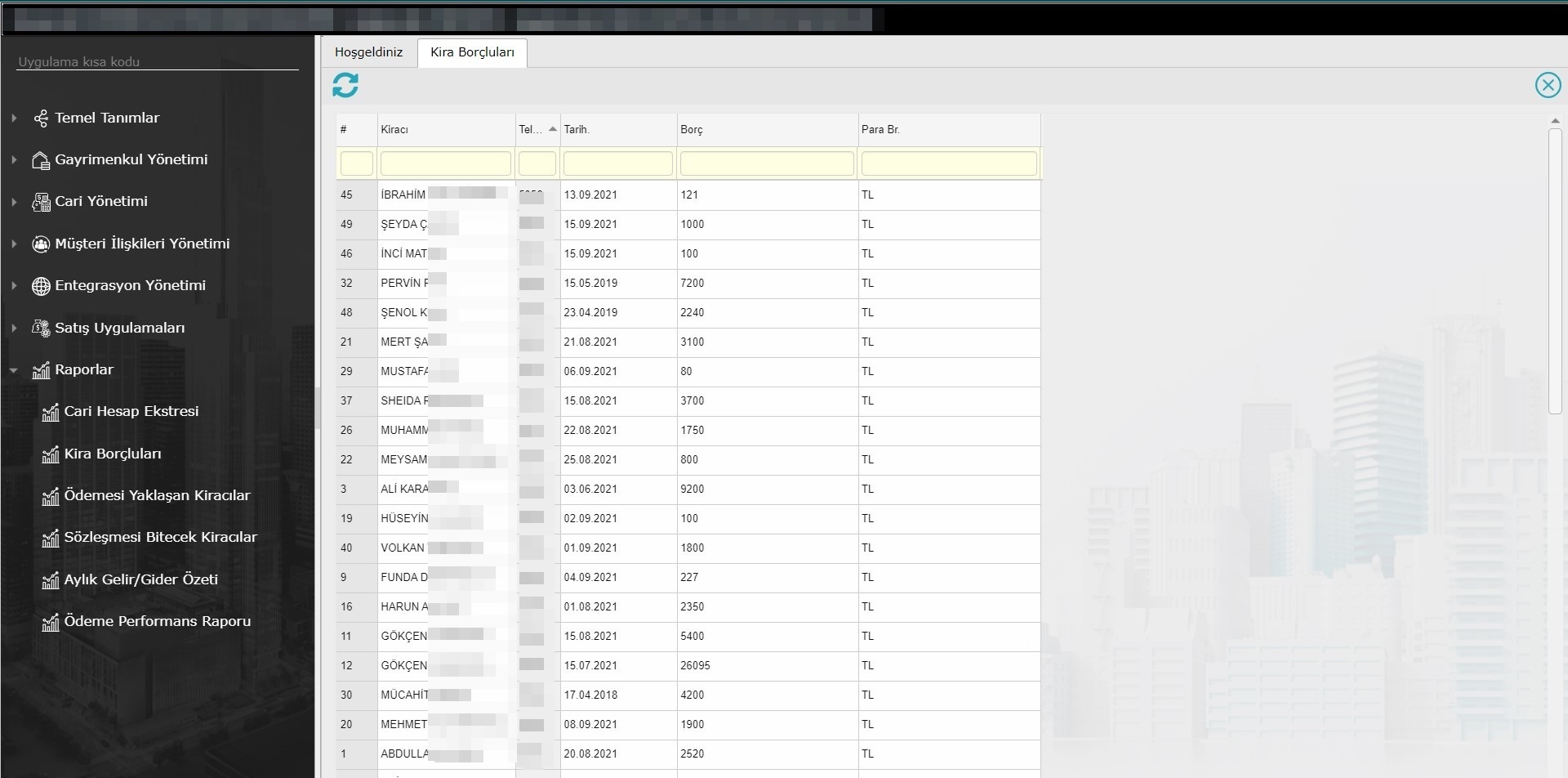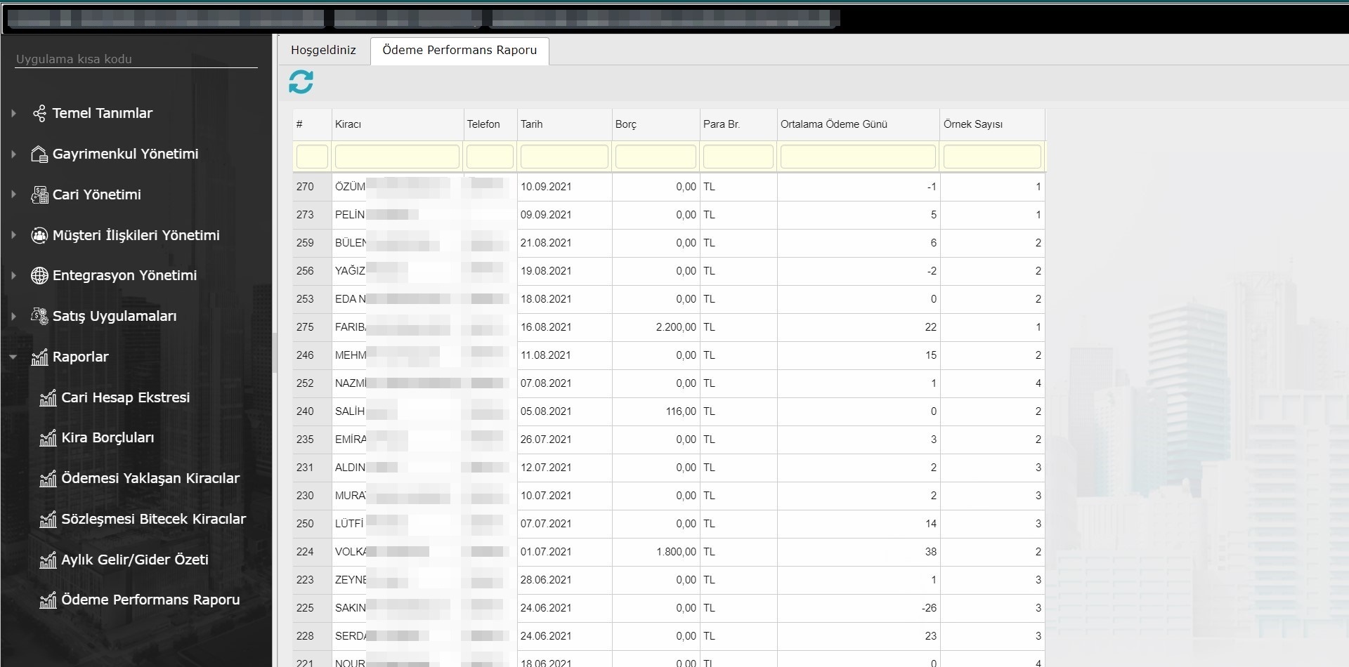 Sistem üzerine işlediğiniz veriler geniş raporlama seçenekleri ile daha anlamlı hale gelmektedir.Kira gelirleriniz üzerinden kiracı ve mülk performanslarını izleyebilir, gelir ve tüm gider kalemleriniz ekstre raporu üzerinde sunulan opsiyonlarla analiz edebilir ve diğer gelişmiş raporlama imkanlarımızdan faydalanabilirisiniz